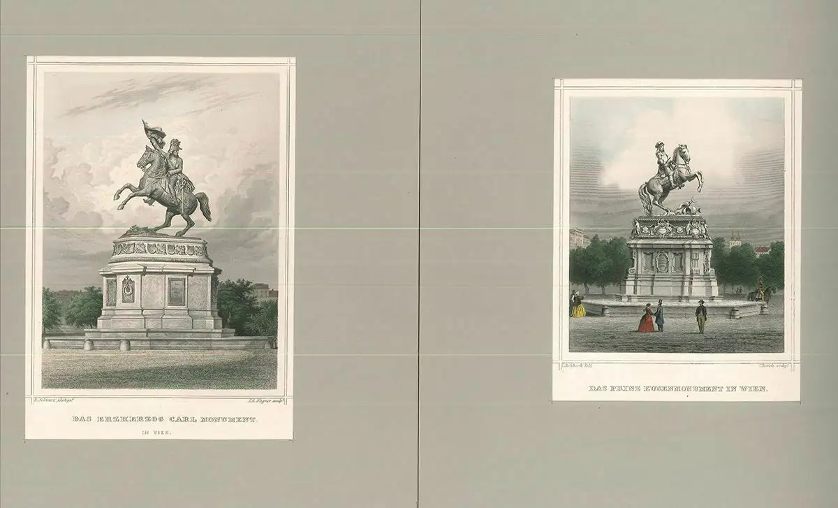 Das Prinz Eugenmonument in Wien. / Das Erzherzog Carl Monument in Wien.