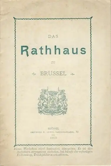 guter Zustand, geringe Gebrauchs- und Alterungsspuren: Umschlag etwas verschmutzt und fleckig - Seiten überwiegend sauber und ordentlich - Seiten teils etwas eselsohrig - Klammerrost, Führer durch das Rathaus der belgischen Hauptstadt - kurze Geschichte - Flur des ersten Stockwerks - Saal des Gemeinderates - Maximilian's Saal - Vorzimmer - Galerie die zum Amtszimmer des Bürgermeisters führt - usw, Softcover, ca. 13 x 19, 23 Seiten