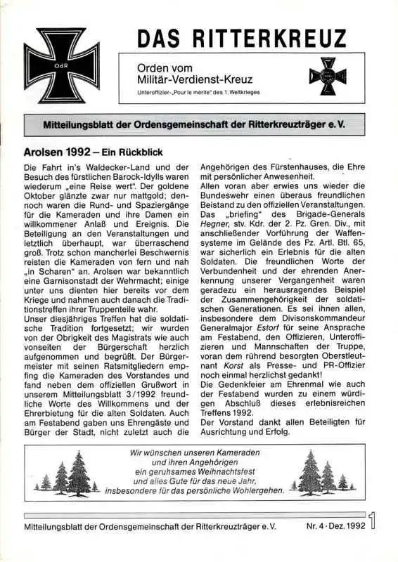 Das Ritterkreuz-Mitteilungsblatt der OG der Ritterkreuzträger e.V. 4-1992