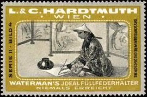 Watermans Ideal Füllfederhalter, niemals erreicht, Serie II, Bild 4, Größe/Zustand: 4x6 , guter Zustand, Original alte Reklamemarke die seinerzeit für die Werbung benutzt wurde