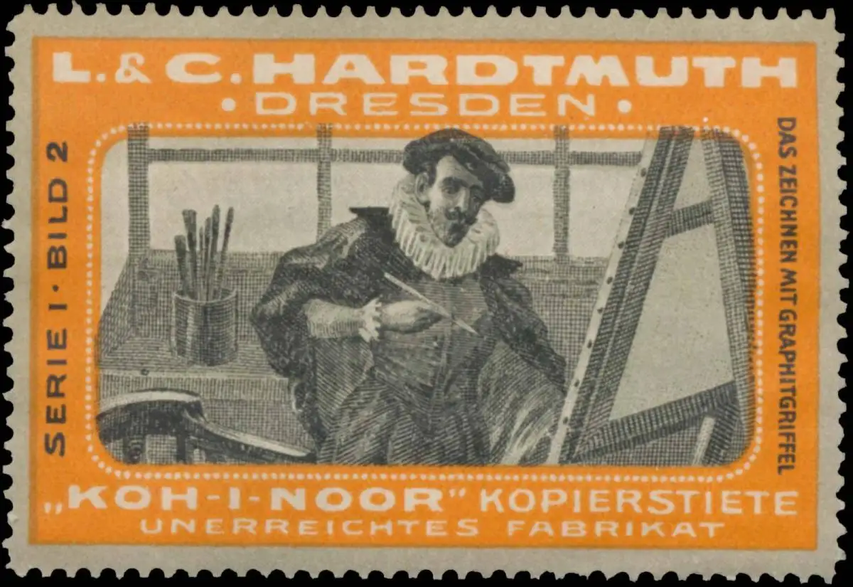 Koh - I - Noor Kopierstifte, unerreichtes Fabrikat, Serie I, Bild 2, orange, Größe/Zustand: 4x6 , guter Zustand, Original alte Reklamemarke die seinerzeit für die Werbung benutzt wurde