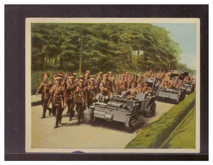 Dt-Reich (009403) Sammelbild Das waffenstarrende Ausland, 2 1/2 LLoyd Zigaretten, Bild 2, Englische Infanterie auf dem.