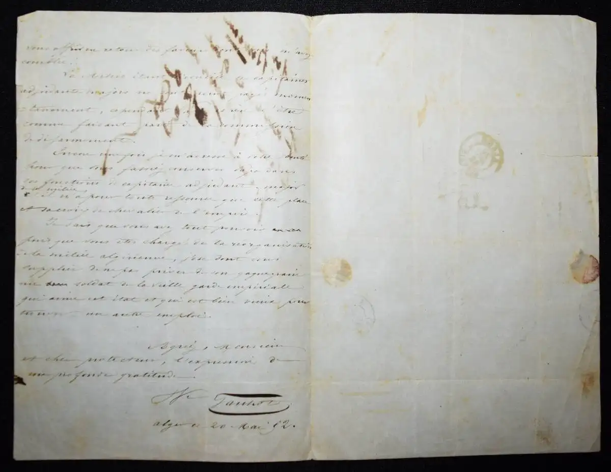 eigenhändigen Brief vom 16. 7. 1853 mit dem Briefkopf „Ministère de la