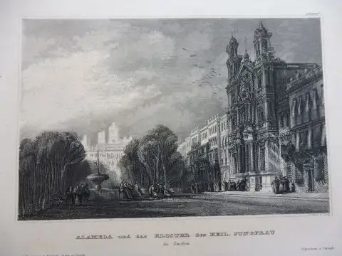 Titel: ORIGINAL- STAHLSTICH : ALAMEDA und das KLOSTER der HEIL. JUNGFRAU in Cadix