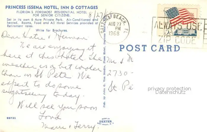 Daytona_Beach Princess Issena Hotel Inn and Cottages Air view postalisch gelaufen 1968 Erhaltung siehe scans [WerneD78] WernPID7