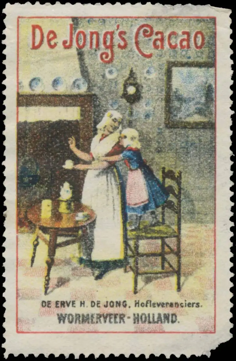 Kakao, Holland, Größe/Zustand: 4x6 , beschädigt, Original alte Reklamemarke die seinerzeit für die Werbung benutzt wurde