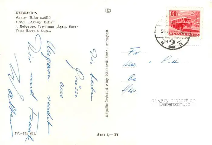 Debrecen_Debrezin Hotel Arany Bika Fontaene Debrecen Debrezin postalisch gelaufen nach 1965 Erhaltung siehe scans [WerneD78] WernPID7