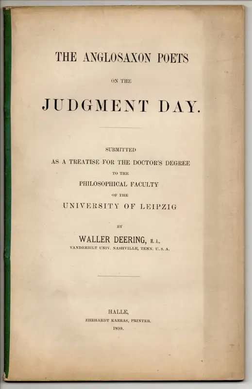 Deering, Waller: The Anglosaxon poets on the judgment day. Dissertation.
