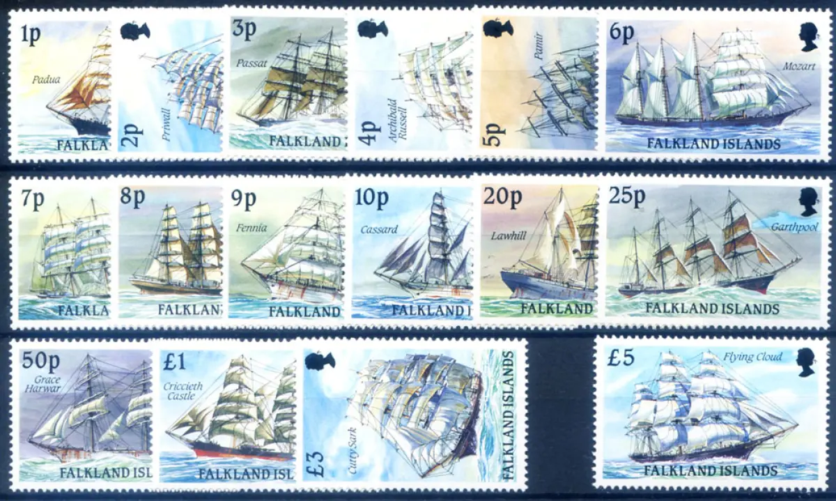 Definitiv. Segelschiffe am Kap Hoorn (1989/1990). Serie + Ergänzungswert. Yvert 2019: 500/514 + 529 (**) - Euro 90,00.