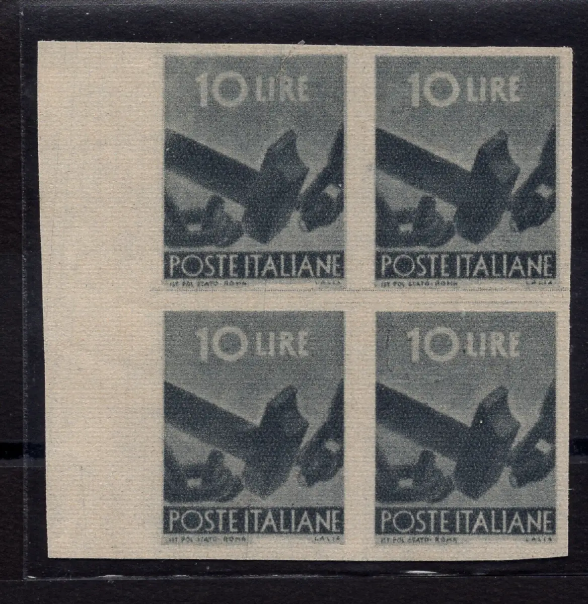MNH - Vollgummi - Democratica Lire 10 schiefer Falso di Milano n. F 558a Viertel ungezähnt Blattrand, neuer perfekter Vollgummi - Selten - Kat. euro 2400 Cod. 3483/WEB