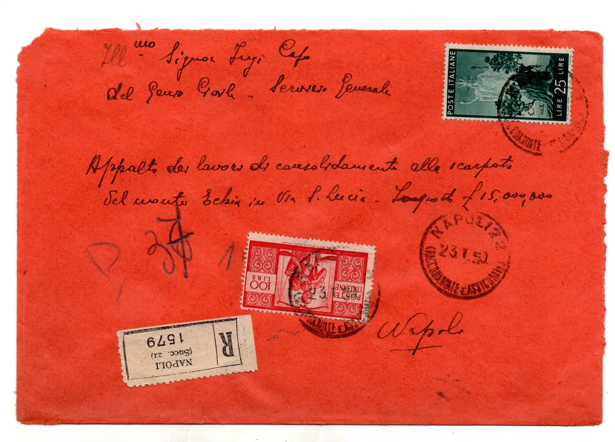 Democratica Lire 100 Nr. 565 (II. Platte) Ihren Umschlag Racc. von Neapel in die Stadt am 23.1.50 mit Ergänzungsnummer 562 - Uncommon - CH Cod. 630/19