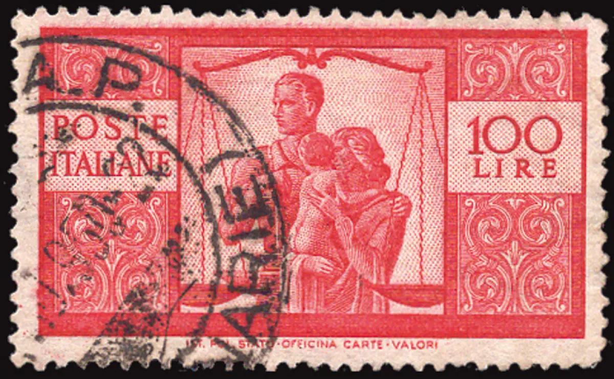 GEBRAUCHT - Democratica Lire 100 Nr. 565 lebendiges Karmin, zweite Verzahnungsplatte 14,1/4 weißes plattes Papier Position. 82 (Sass. spec. n. 25Al) - sehr gut zentriert Cod.572/182