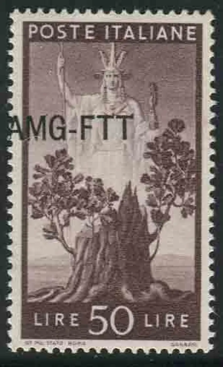 Democratica Lire 50 Sorten verschobener Aufdruck Vollgummi - Democratica Lire 50 Nr. 66i mit stark nach links verschobenem Aufdruck - Ungewöhnlich - Kat. euro 240 n. 984/5
