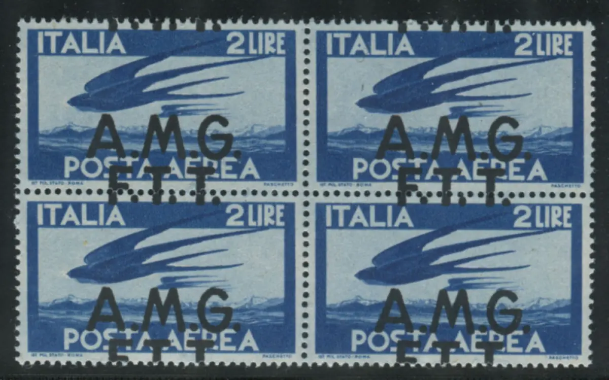 Demokratische Luftpost Lire 2 mit stark nach unten verschobenem Aufdruck Vollgummi - Demokratische Luftpost Lire 2 Nr. 2b Viertel mit stark nach unten verschobenem Aufdruck (zu Pferd) - Ungewöhnlich - Kat. 260 Code 968/3