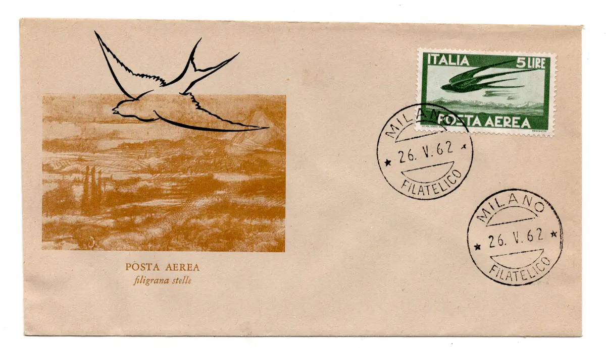 Luftpost Lire 5 Nr. 155 auf bedrucktem FDC Umschlag, Ausgabe unbekannt - nicht gereist COD 551/2