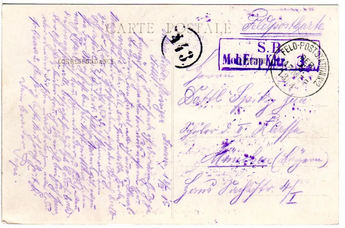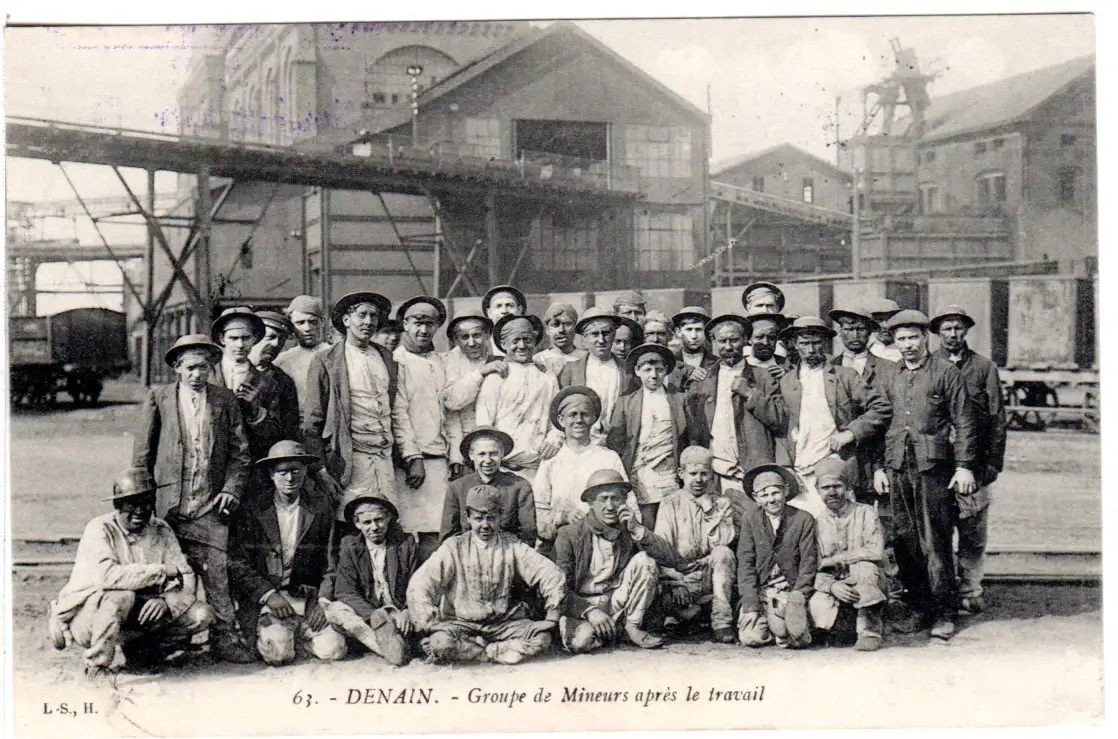 Denain, Groupe de Mineurs, 1915 per Bayern-FP gebr. sw-AK m. Eisenbahn