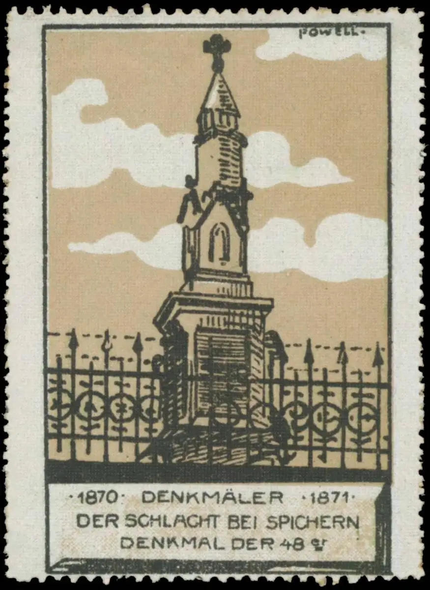 Denkmäler der Schlacht bei Spichern 1870 - 1871, Größe/Zustand: 6x5 , guter Zustand, Original alte Reklamemarke die seinerzeit für die Werbung benutzt wurde
