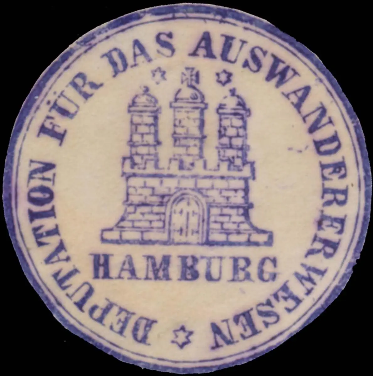 Auswanderer, Briefsiegelstempel, Größe/Zustand: 3 , beschädigt, Original Verschluss-Siegelmarke aus Papier welche früher von Behörden, Firmen etc. zum Versiegeln der Briefe benutzt wurden