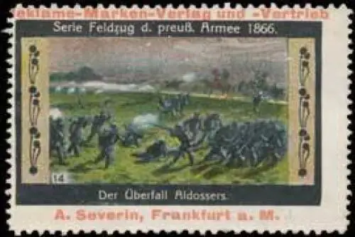 Serie Feldzug der preußischen Armee 1866, Größe/Zustand: 4x6 , guter Zustand, Original alte Reklamemarke die seinerzeit für die Werbung benutzt wurde