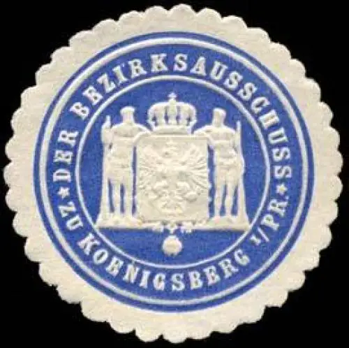 Koenigsberg, blau, weiß, geprägt, Größe/Zustand: 4 , guter Zustand, Original Verschluss-Siegelmarke aus Papier welche früher von Behörden, Firmen etc. zum Versiegeln der Briefe benutzt wurden