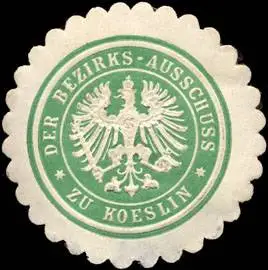 Koeslin, Bezirks - Ausschuss, grün, weiß, geprägt, Größe/Zustand: 4 , guter Zustand, Original Verschluss-Siegelmarke aus Papier welche früher von Behörden, Firmen etc. zum Versiegeln der Briefe benutzt wurden
