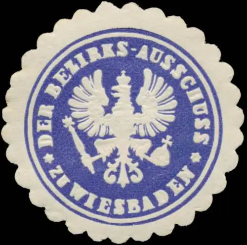 Bezirks-Ausschuss, blau, weiß, geprägt, Größe/Zustand: 4 , guter Zustand, Original Verschluss-Siegelmarke aus Papier welche früher von Behörden, Firmen etc. zum Versiegeln der Briefe benutzt wurden