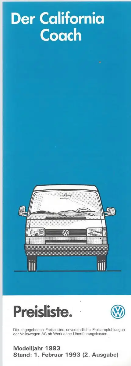 Der California Coach mit Preisliste. 1993. Prospekt.