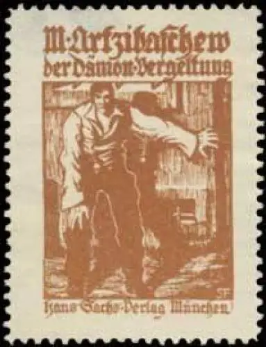 Michail Artzibaschew , Größe/Zustand: 4x3 , guter Zustand, Original alte Reklamemarke die seinerzeit für die Werbung benutzt wurde