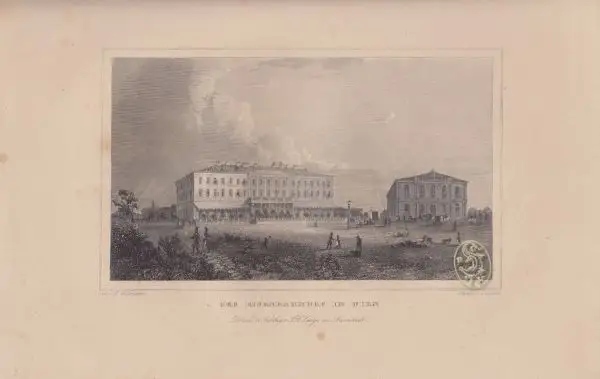 Darmstadt, Lange [1842]. Orig.-Stahlstich v. Louis Hoffmeister. 16,5 x 25 cm. (Blattgr.); 9, 5 x 15, 5 cm. (Bildausschn.). Leicht stockfleckig.