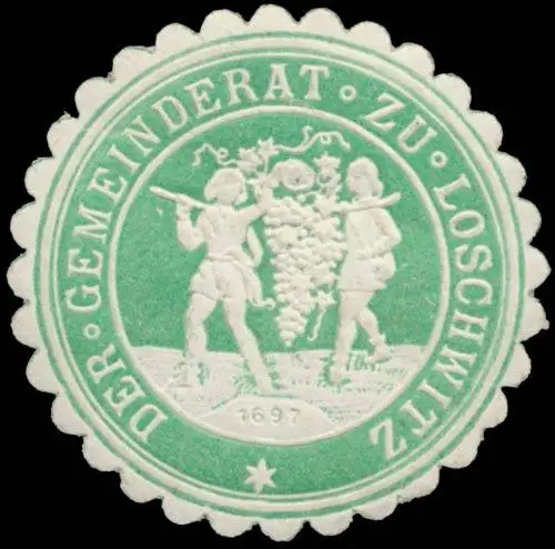 Wein, grün, weiß, geprägt, Größe/Zustand: 4 , guter Zustand, Original Verschluss-Siegelmarke aus Papier welche früher von Behörden, Firmen etc. zum Versiegeln der Briefe benutzt wurden