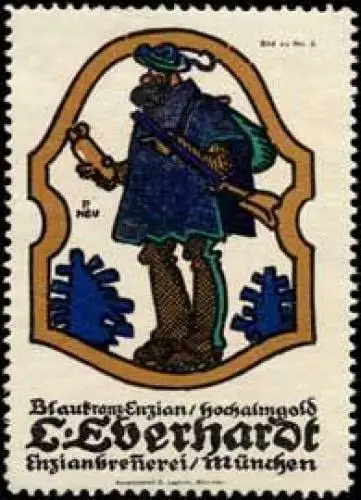 Jagd, Bild zu Nr. 3, Blaukranz Enzian / Hochalmgold L. Eberhardt Enzianbrennerei, Jagd, Größe/Zustand: 6x4 , guter Zustand, Original alte Reklamemarke die seinerzeit für die Werbung benutzt wurde