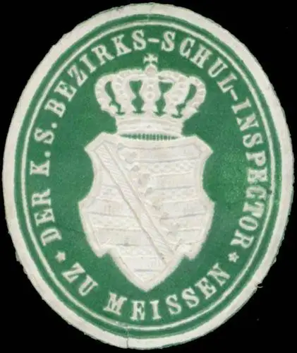 Schule, Schulinspektor, Meissen, Bezirks-Schul-Inspector, grün, weiß, geprägt, Größe/Zustand: 3x3 , leicht beschädigt, Original Verschluss-Siegelmarke aus Papier welche früher von Behörden, Firmen etc. zum Versiegeln der Briefe benutzt wurden
