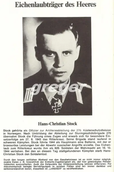 Erlebnisberichte zur Geschichte des Zweiten Weltkrieges Mit Magazin und dokumentarischer Bildbeilage   Heinz J. Nowarra Kampf unter den Sternen - Die dramatischen Einsätze deutscher Nachtjäger Rückseite: Japanische Kriegsflugzeuge Nakajimima Ki 84 Hayate Bild und Lebenslauf von Hans-Christian Stock, Eichenlaubträger des Heeres Alle aufgeführten Firmen-, Markennamen und Warenzeichen sind Eigentum des jeweiligen Herstellers und dienen lediglich der Beschreibung und der eindeutigen Identifikation...