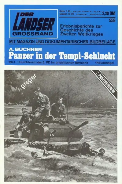 Erlebnisberichte zur Geschichte des Zweiten Weltkrieges - Mit Magazin und Dokumentarischer Bildbeilage - A. Buchner - Panzer in der Tempi-Schlucht - 1941 - Durchbruch der 2. PD im griechischen Bergland ( Neuauflage ) - Rückseite: Deutsche Flugkörper Fernrakete A4 b - Bild und Lebenslauf von Theo-Helmut Lieb ? Eichenlaubträger des Heeres - Alle aufgeführten Firmen-, Markennamen und Warenzeichen sind Eigentum des jeweiligen Herstellers und dienen lediglich der Beschreibung sowie der eindeutigen Identifikation