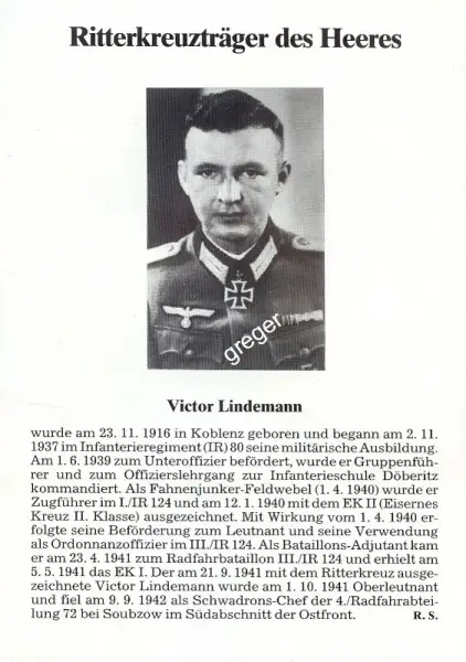 Erlebnisberichte zur Geschichte des Zweiten Weltkrieges - Mit Magazin und Dokumentarischer Bildbeilage - K.Kollatz - Horst Niemack - 1Vom Kavalleristen zum hochausgezeichneten Panzergeneral - Rückseite: Deutsche Spezialwaffen Wurfkörper - Bild und Lebenslauf von Victor Lindemann Ritterkreuzträger des Heeres - Alle aufgeführten Firmen-, Markennamen und Warenzeichen sind Eigentum des jeweiligen Herstellers und dienen lediglich der Beschreibung sowie der eindeutigen Identifikation
