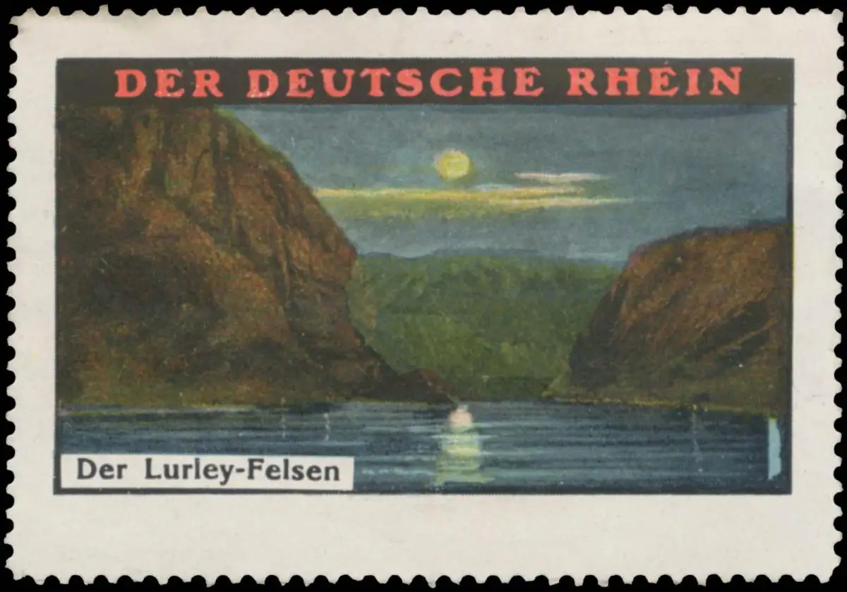 Der Deutsche Rhein, Fehldruck: Lurley-Felsen, Größe/Zustand: 4x6 , guter Zustand, Original alte Reklamemarke die seinerzeit für die Werbung benutzt wurde