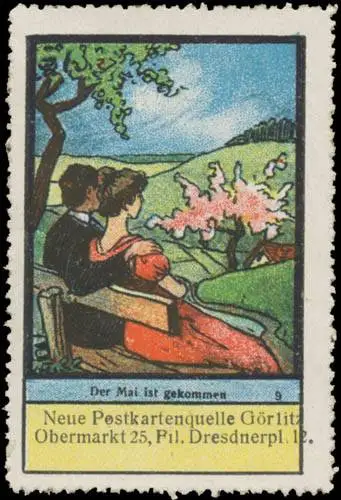 Serie: Volkslieder. Neue Postkartenquelle in Görlitz, Bruno Hanzig, Ansichtskarten und Schreibwaren, Obermarkt 25, Filiale: Dresdner Platz 12, Größe/Zustand: 6x4 , guter Zustand, Original alte Reklamemarke die seinerzeit für die Werbung benutzt wurde