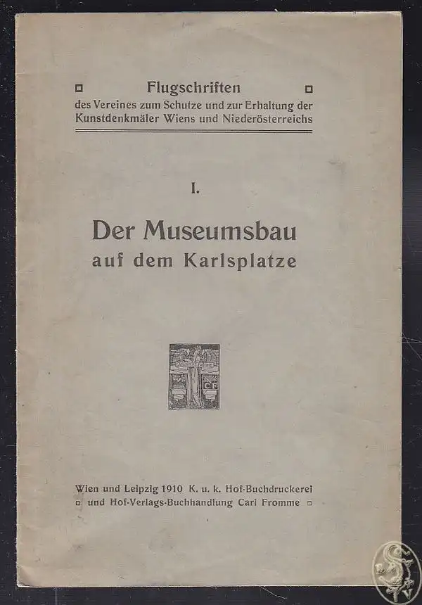Wien/Lpz., Carl Fromme 1910. gr.-8°. 14 S. Mit 1 Taf. OBrosch. Hs. Notiz am Hinterdeckel. - (Flugschriften des Vereines zum Schutze und zur Erhaltung der Kunstdenkmäler Wiens und Niederoesterreichs. 1.)