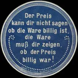 ob die Ware billig ist, die Ware muß dir zeigen, ob der Preis billig war! Etikett, Größe/Zustand: 5 , guter Zustand, Original alte Reklamemarke die seinerzeit für die Werbung benutzt wurde