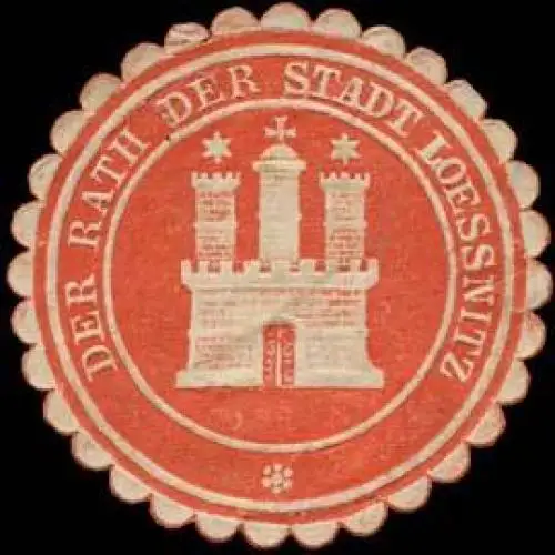 rot, weiß, geprägt, Loessnitz, Größe/Zustand: 3 , guter Zustand, Original Verschluss-Siegelmarke aus Papier welche früher von Behörden, Firmen etc. zum Versiegeln der Briefe benutzt wurden