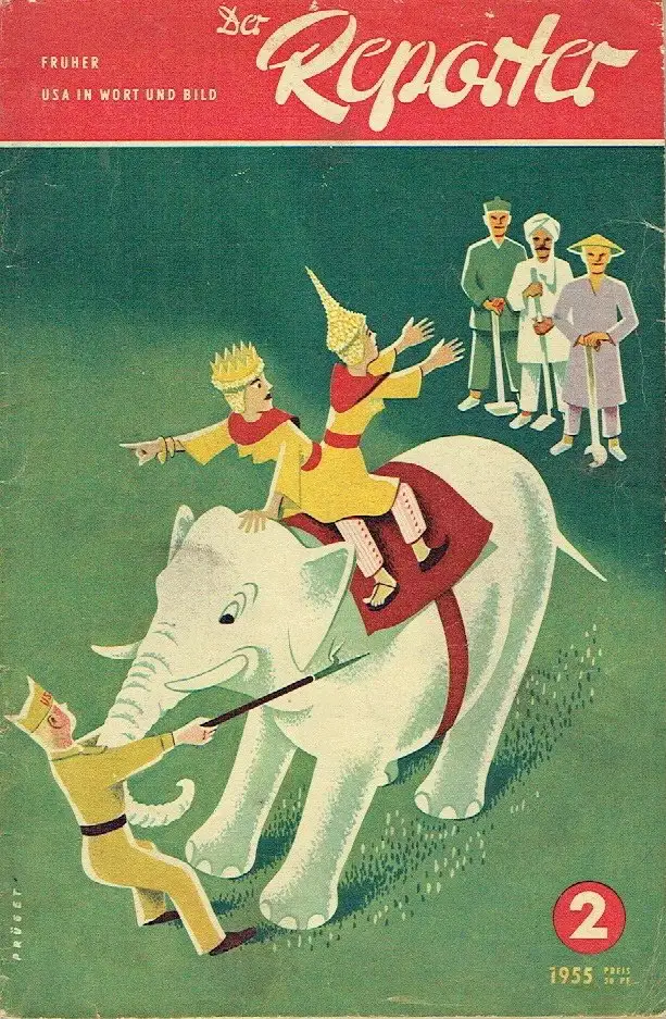 guter bis sehr guter Zustand, geringe Gebrauchs- und Alterungsspuren: Vorderseite mit kleinen Einrissen und teils leicht knittrig - Umschlag im Falz oben und unten gering eingerissen - Seiten sauber und ordentlich - Seiten teils etwas eselsohrig, Riccardo d'Amico, Turin: Karneval in Viareggio - Brief aus London - Rosa Michel: Camarades-Freunde - Haltet England weiß! - Der weiße Elefant unter die Räuber gefallen, s. Titelbild (Prinz Wan Waithayakon Kromuen Naradhip Bongsprabandh) - Die Pirateninsel (USA rüsten Taiwan und ihren Verbündeten Tschiangkaischek mit neuen Waffen aus) - Es gibt noch Propheten (Präsident von Panama wird ermordet und Nicaragua überfällt Kostarika) - Dokumente - Wie teuer ist ein Mensch? - Wer hat schuld? - Mr. Moneymaker - Die Spinne mit den 16 Beinen (Atom-Spider) - Treffpunkt Leipzig (nach Aufführungs-Erfolgen in GB und Frankreich verbietet Italien die Aufführung eines DDR-Dok-Films über die Leipziger Messe) - Vom Reporter notiert - Frame up: Der Fall Carl Braden (Ku-Klux-Klan) - Horst Born: Immer kleiner wird die Erde (Flugverkehr über die Polarzone) - Hollywood sucht neue Reißer - Lola Villacorta de Vidaurre: Don Otto greift ein - Unser Rätsel, Softcover, ca. 15,5 x 24, 40 Seiten mit zahlreichen Bildern