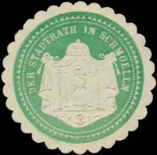 Schmoelln, grün, weiß, geprägt, Größe/Zustand: 4 , guter Zustand, Original Verschluss-Siegelmarke aus Papier welche früher von Behörden, Firmen etc. zum Versiegeln der Briefe benutzt wurden