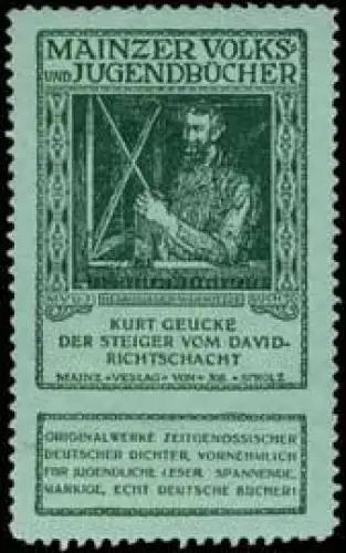 Kurt, Geucke, Herausgeber: Wilhelm Kotzde, Reihe: Mainzer Volks- und Jugendbücher, Größe/Zustand: 6x3 , guter Zustand, Original alte Reklamemarke die seinerzeit für die Werbung benutzt wurde