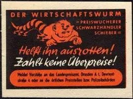 Der Wirtschaftswurm = Preiswucherer - Schwarzhändler - Schieber = Helft ihn ausrotten ! Zahlt keine Überpreise !