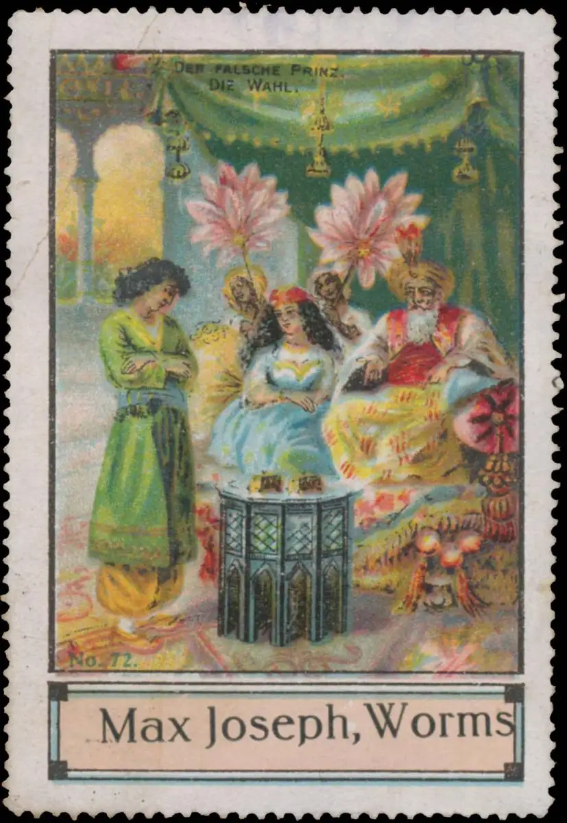 Die Wahl, Märchen aus 1001 Nacht, Bild Nr. 72, Größe/Zustand: 7x5 , beschädigt, Original alte Reklamemarke die seinerzeit für die Werbung benutzt wurde