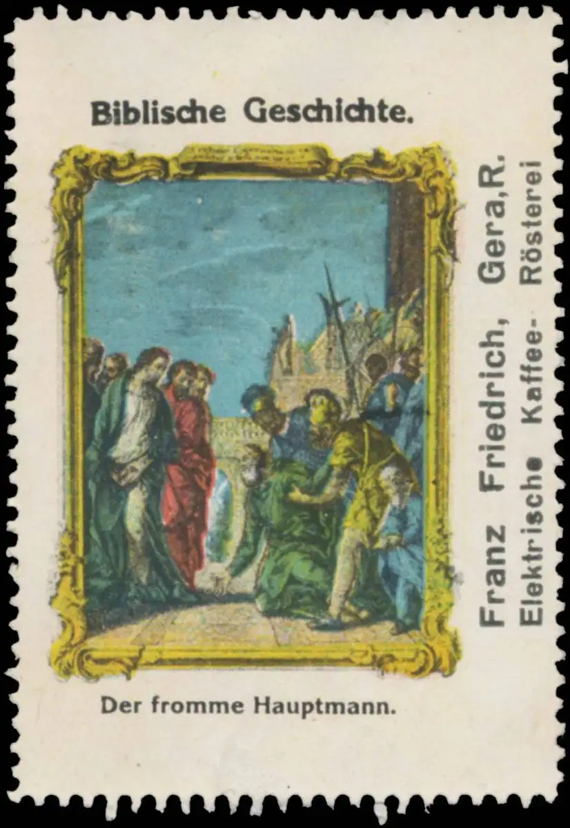 Serie: Biblische Gesellschaft, Religion, elektrische Kaffee-Rösterei Franz Friedrich, Gera-Reuß, Größe/Zustand: 6x4 , guter Zustand, Original alte Reklamemarke die seinerzeit für die Werbung benutzt wurde