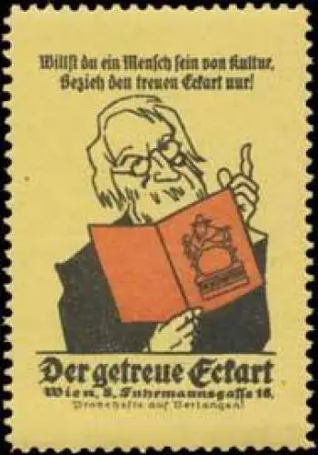 Willst du ein Mensch sein von Kultur, bezieh den treuen Eckart nur!, Größe/Zustand: 5x4 , guter Zustand, Original alte Reklamemarke die seinerzeit für die Werbung benutzt wurde