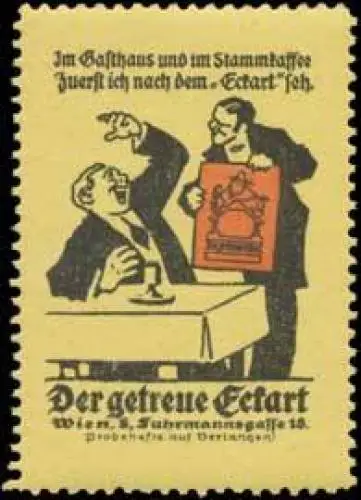 Im Gasthaus und im Stammkaffee zuerst ich nach dem Eckert seh., Größe/Zustand: 5x4 , guter Zustand, Original alte Reklamemarke die seinerzeit für die Werbung benutzt wurde