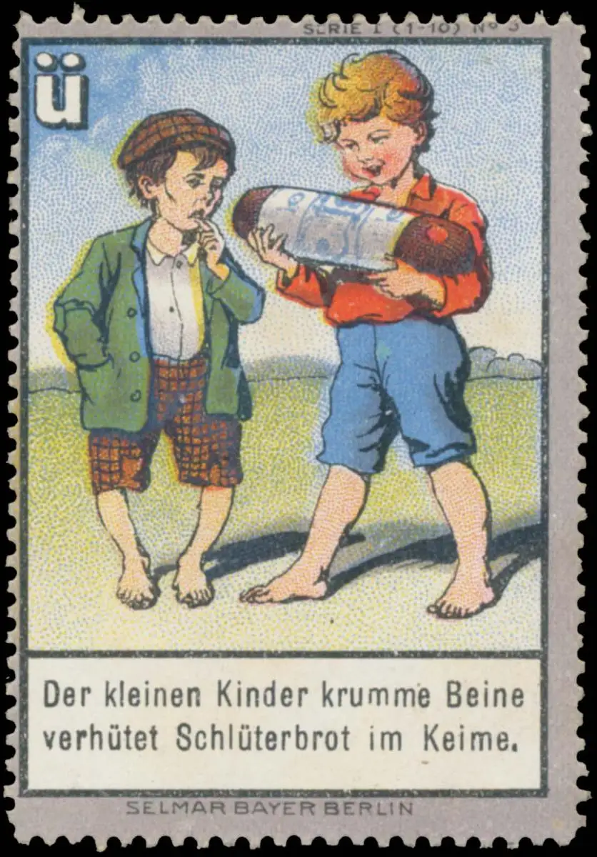 verhütet Schlüterbrot im Keime. Serie I, Nr. 3, Buchstabensatz, Buchstabe Ü, Druck: Selmar Bayer, Berlin , Größe/Zustand: 6x4 , guter Zustand, Original alte Reklamemarke die seinerzeit für die Werbung benutzt wurde