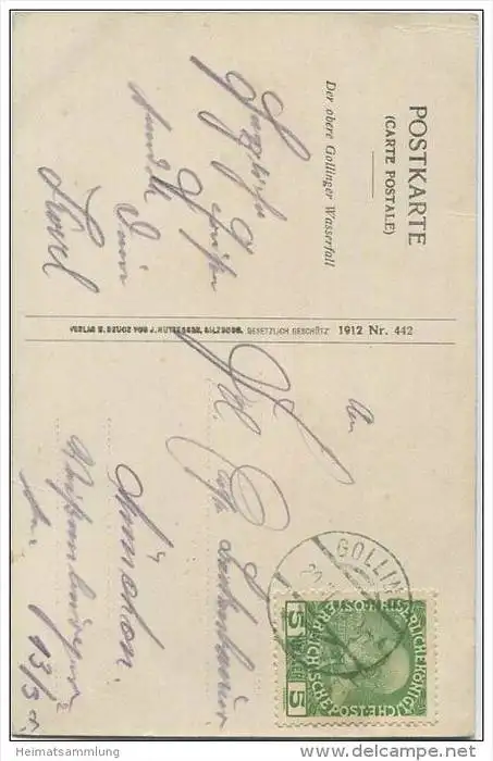 Der obere Gollinger Wasserfall - Verlag J. Huttegger Salzburg (E12201) gel. 1913